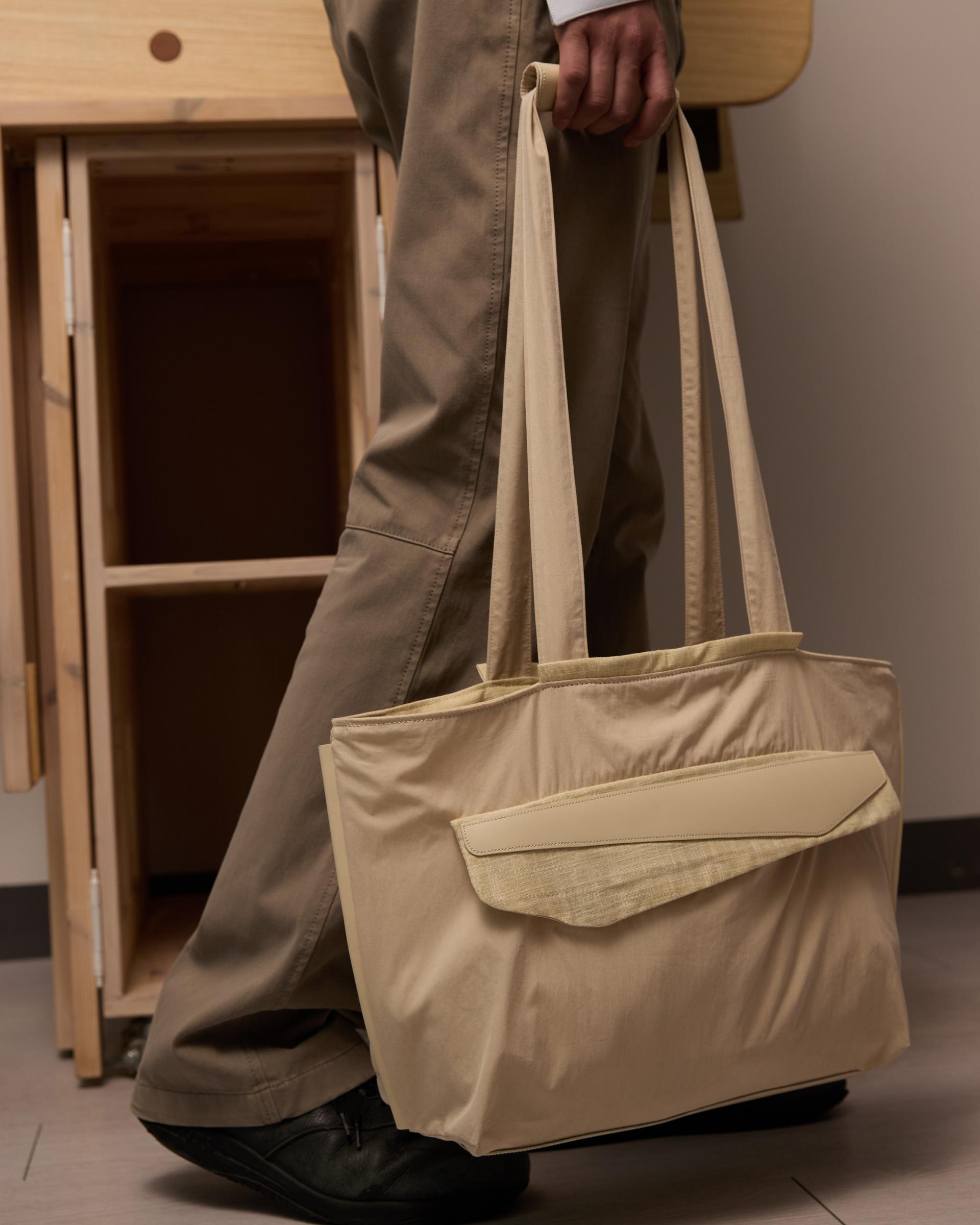 가죽 트리밍이 메인 바디의 양옆, 하단에 적용 되었으며