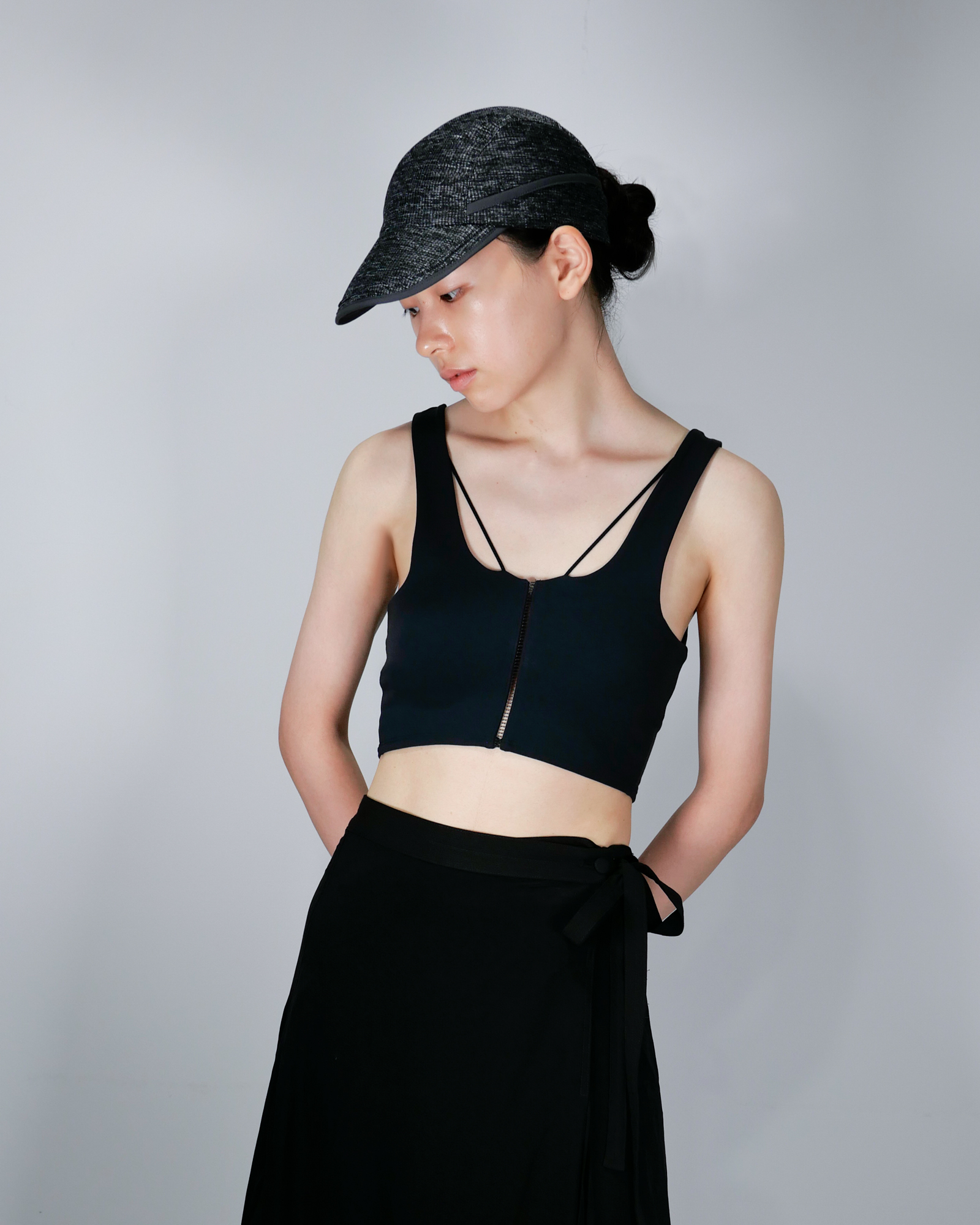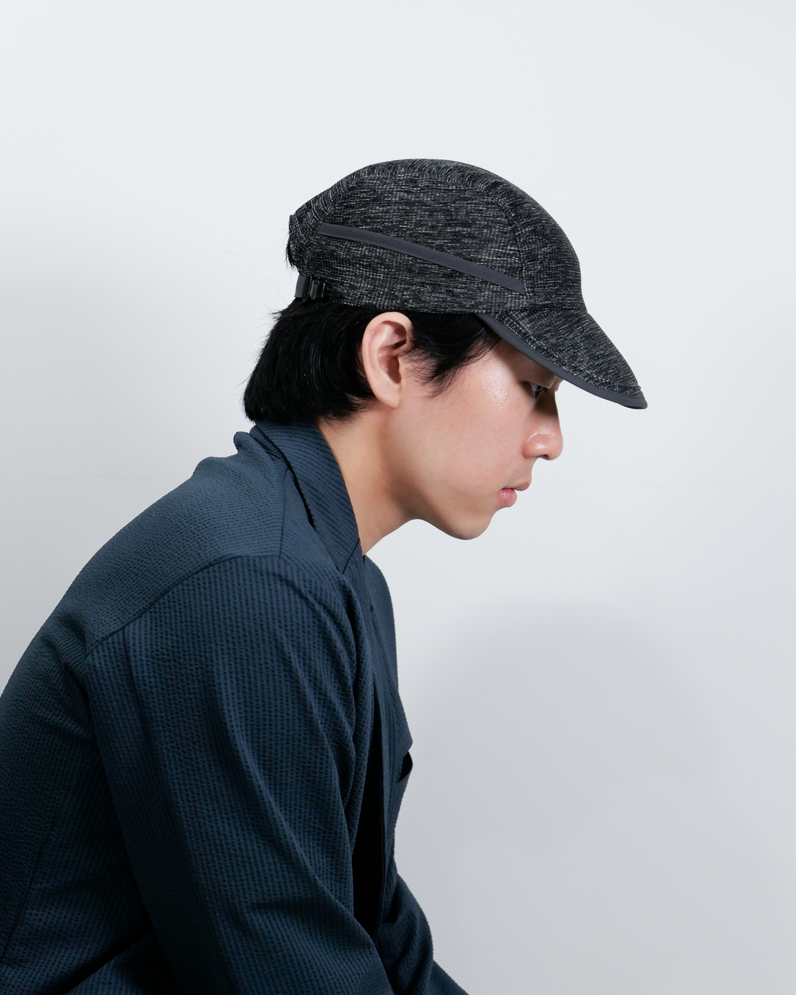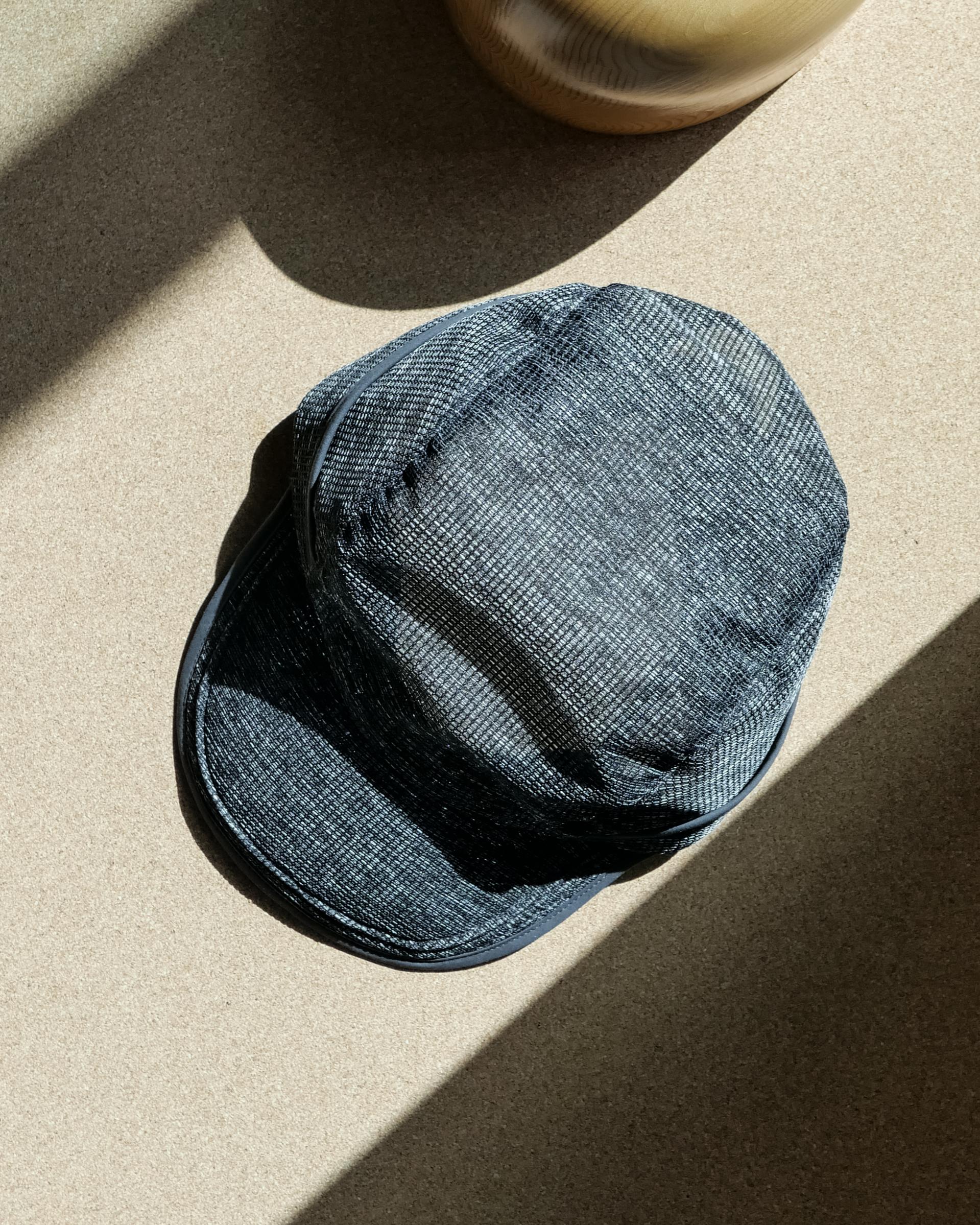 통기성이 우수한 흑색, 백색 원사가 혼합된 메쉬 소재로 제작된 캡