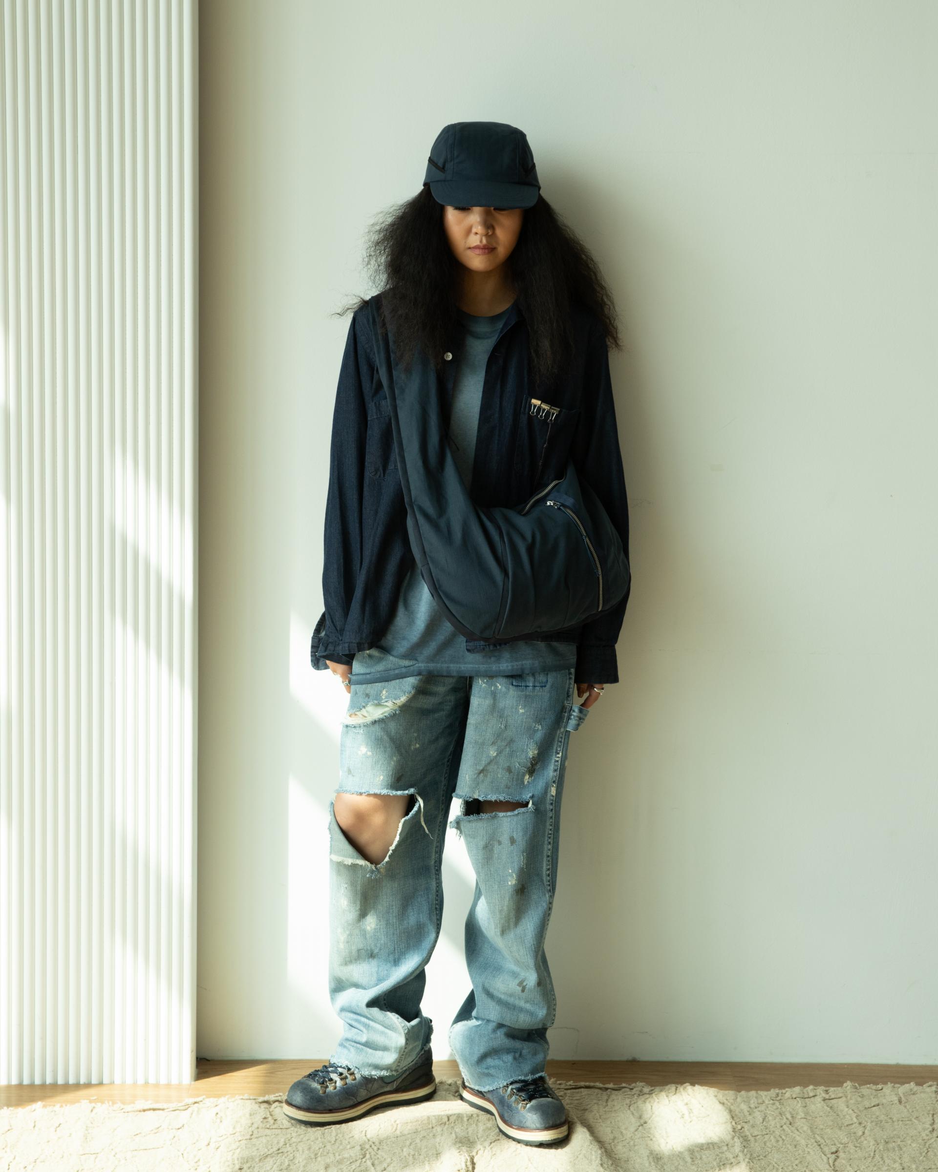 불규칙 헤링본 트윌 조직감 소재로 제작된 캡입니다